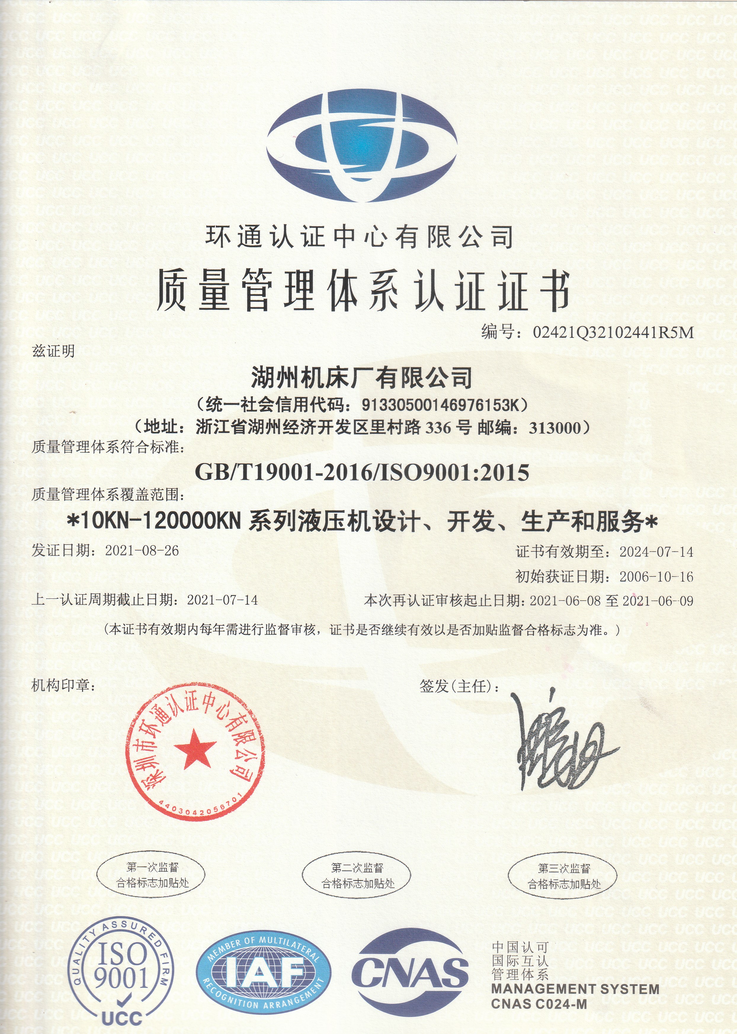 湖州機床廠(chǎng)有限公司始建于1955年,是國內大中型液壓機專(zhuān)業(yè)制造企業(yè),國家級高新技術(shù)企業(yè),我國液壓機國家標準主要起草單位,中國液壓機行業(yè)知名品牌企業(yè)。